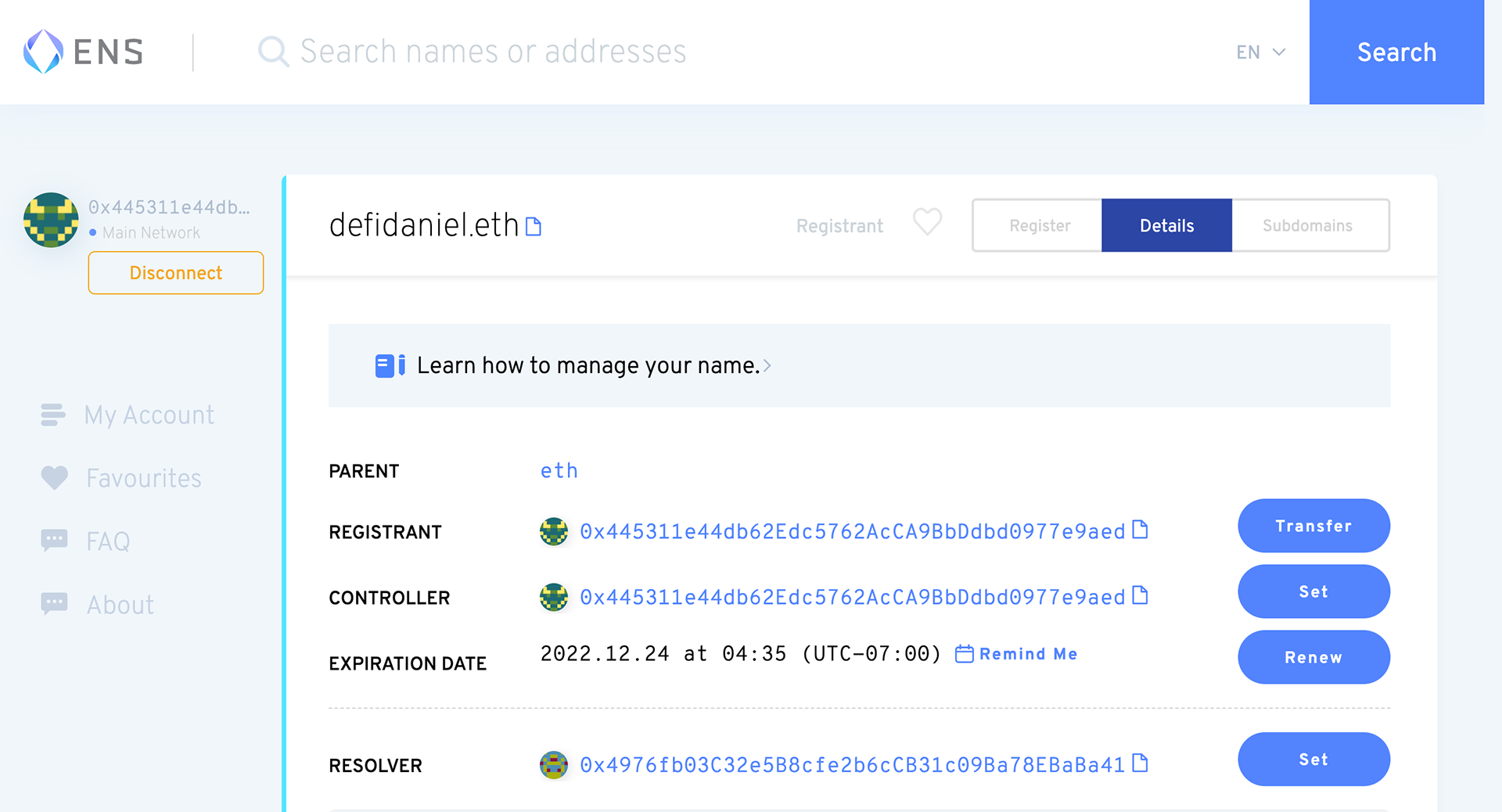 I registered and purchased the following ENS Domain: DeFiDaniel.eth